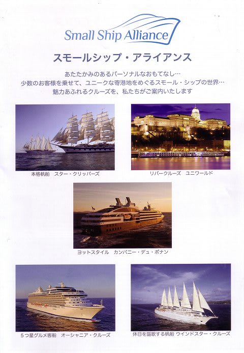 お客様各位 平素は格別のご高配賜り、厚く御礼申し上げます。 当社加盟のスモールシップアライアンスは、3年目のシーズンを迎えることとなり、 この度、2年ぶりにセミナーを開催することとなりました。 スモールシップには、リバークルーズ、帆船、ヨットスタイル、グルメ船など、個性派の船が揃っています。 このセミナーでは、スモールシップ各社の最新情報ならびに日本人コーディネーター乗船クルーズの 商談会も開催いたします。 今年は、東京、大阪、福岡の3会場にて開催いたします。 皆様のご来場を心からお待ち申し上げております。 当社取扱いクルーズ会社からは、当日下記のようなクルーズをご案内させていただく予定です。 ★英国 サガクルーズ★ NEW SHIP サガサファイア デビュー サガ・ラストミニッツ!! サガルビー2013ワールドクルーズ 豪州区間乗船 ★フランス カンパニー・デュ・ポナン★ ロストラル 9/21ベニス〜アテネ7泊(日本人コーディネーター乗船) ル・ボレアル 2013/2/18南極10泊(日本人コーディネーター乗船) NEW SHIP ル・ソレアル 2013日本発着クルーズ情報 ★アメリカ シードリーム・ヨットクラブ セミナー初登場★ シードリームⅠ 9/29ベニス発着エーゲ海7泊(日本人コーディネーター乗船) SDYCラストミニッツ!! ★★★ 東 京 サロン&商談会 ★★★ 日時: 7月1日(日) 14:30開場 14:45〜16:45 場所: トラベルカフェ飯田橋店 参加費: お1人様 1500円 (ケーキとソフトドリンク2杯付き) *当日ご成約のお客様にはキャッシュバックいたします。