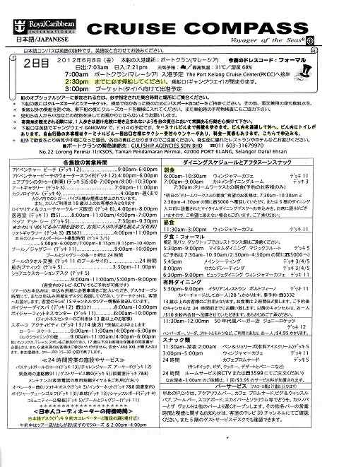Voyager of the Seas マラッカクルーズ その11 06/08 その1 船内新聞