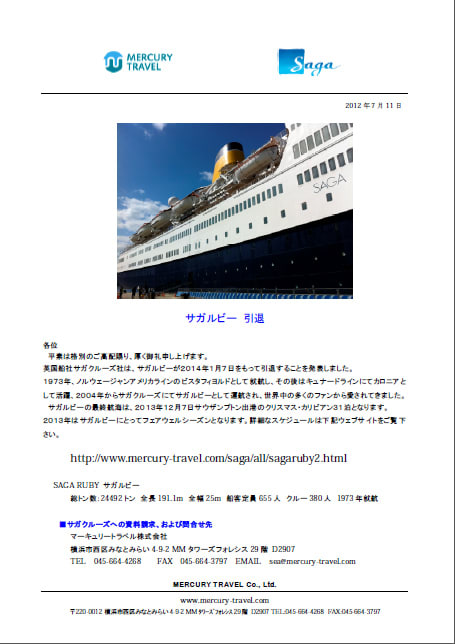 日本の総代理店、マーキュリートラベルさんからもアナウンスがありました。
