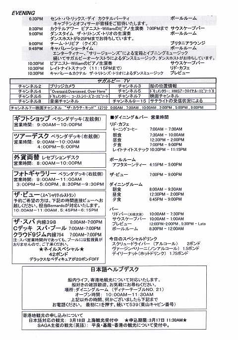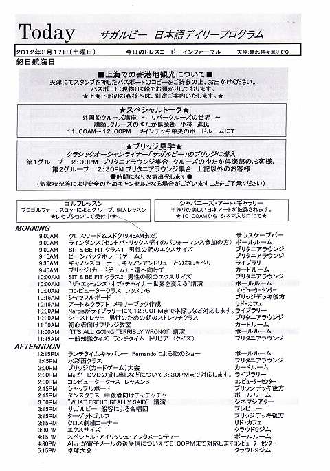 SAGA RUBYコレクターズボヤージ その37 3/17 その1 日本語船内新聞