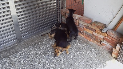 ワンコが寝そべってました...