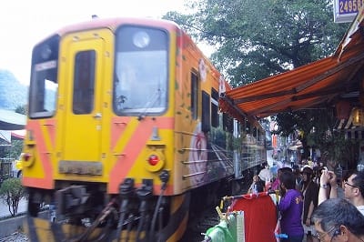 十分の繁華街は平渓線の線路に沿ってあります。
