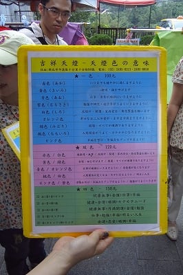 墨で願い事を大書きして天燈を放ちます。