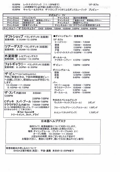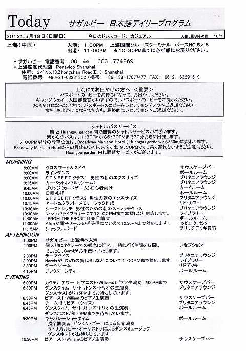 SAGA RUBYコレクターズボヤージ その44 3/18 その1 日本語船内新聞