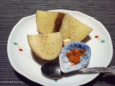 蒸しじゃがいもの雲丹ソースかけ