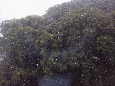 外を何気なく見たら、なんと雪が降ってる...
