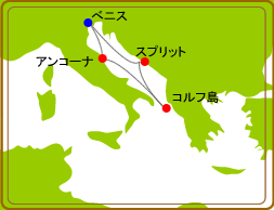 旅行代金 東京(成田)発着 109,800円〜153,000円 ※10組様限定内側価格は完売御礼 出発日 2013年 4/14 船内には日本人コーディネーター乗船予定! 船内新聞も日本語翻訳されるため安心です。 水の都ベニスから出港! アンコーナへ寄港。 古い歴史を感じられるモニュメントが数多く残る旧市街が見どころです。 ザグレブに次ぐクロアチア第2の都市スプリットへ寄港。 町とその周辺の美しい景色が世界遺産に登録されています。 旅程 1 4/14(日) 成田空港出発、空路、乗継便にてベニスへ 2 4/15(月) 到着後、送迎車にてベニス港へ 「MSCアルモニア」乗船手続き ベニス 出港 - 18:00 3 4/16(火) アンコーナ (イタリア) 古い歴史を感じられるモニュメントが数多く見られる旧市街が見どころです。内陸では巡礼地に見られるような、美しい丘陵の風景が広がります。ビーチリゾートも充実しています 入港:07:00 出港:13:30 4 4/17(水) コルフ島 (ギリシャ) 中世から地中海の交通の要所として栄え、かつてイギリスやヴェネチアに統治されていたため、ギリシャとヨーロッパの文化が共存する独特のムードをもっています。 入港:13:00 出港:18:00 5 4/18(木) スプリット (クロアチア) ザグレブに次ぐクロアチア第2の都市スプリット。町とその周辺の美しい景色が世界遺産に登録されており、現在3,000人もの人々が生活をしているディオクレティアヌス宮殿が見所です。 入港:10:00 出港:18:00 6 4/19(金) ベニス(イタリア) 入港:09:00 下船後、送迎車にて空港へ 空路、乗継便にて帰国の途へ 7 4/20(土) 成田空港着後、入国・通関の後、解散