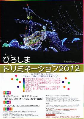 広島でしたか。しかしイルミはいまやどこも華やかなものをやってますね。お酒を飲んだ時点でもう外には行きたくないかも。。。 寒いし(汗