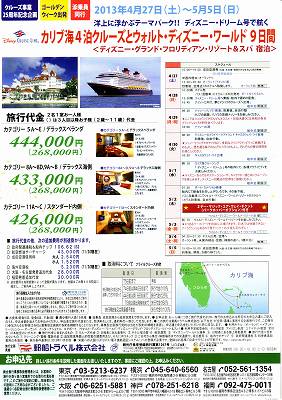 こんばんは〜。 これ、毎年こんな値段で出ているんです。 3年前から気にしてチェックしているんですけど… ディズニークルーズ自体がよほど高いんだなぁ。 とか アメリカって物価が高いのかなぁ。 とか ディズニーリゾートも付いてるしなぁ。 とか… 漠然と思っていたのですが、与太爺さんの記事で、あ。そゆこと。(^-^; FITで行ける人は対象じゃないんですね。 ジジババが孫を連れて、添乗員さんにおんぶに抱っこ状態で連れて行ってもらうやつ? 「添乗員が居るので全て日本語でOK!面倒な書類作成や手続きは代行します」 ってヤツですね。 そういう意味で与太爺さんは対象じゃないような気がします。 添乗員が居れば楽チンだけど、与太爺さんにとって添乗員は「必須」じゃないでしょうし。 勤め先でしばしば海外旅行行く方が「入国書類なんてどの国も不要。パスポートだけあればいい!」って言い張る方が居るので「??」と思ったら、添乗員付きの丸抱えツアーでしか海外へ行ったことがないそうです。(゜o゜;) そういう方々向けなんですよ。きっと。
