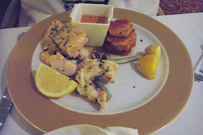 ううう。 いくら晩ご飯前の、腹っ減らし残業モードのワタクシでも、このボリュームのメインは2つも食べられないだろうなぁ…σ(^◇^;) でも、きっとメインだけじゃなくて、アペタイザーやデザートも2種類頼むと追加料金が発生するんでしょうね〜。 ヴァーゴの「あれもこれも注文しろ」(有料だけど)っていうだまし討ちと違って、ウエイターが真っ当に教えてくれるなら無問題デスね♪ 某船は天国ダッタナァ… レオのフレンチは美味しいんですか。φ(..)メモメモ RCIなら「肉をガッツリ喰う!」っていう方がハズレがないのかしらん? 今から悩むなぁ。σ(^◇^;)