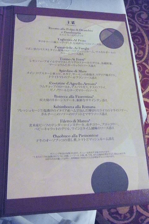 この日のディナーは通常のダイニングではなく、スペシャリティレストランの"PORTOFINO"を予約してました。有料です...(^^;)