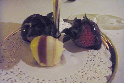 お!おまちかね。ポルトフィーノ♪♪ 有料とは言え、「一品幾ら」のヴァーゴと違ってカバーチャージってやつですよね? 充分カバーチャージ分に見合うお料理に見えます♪(o゜▽゜)o 美味しそうだなぁ〜!( ´艸`) (ヴァーゴでこんなの食べたら、一人5千円は下りません) プチフールもサービスされて、満点♪ 流石に船がデカいだけあって、レストランの選択肢があるのは楽しいですね〜。 ……… マリナー、楽しみ楽しみ♪♪ ほぼ一年先ってのが悔しいナァ。σ(^_^; チョップスグリルとポルトフィーノ。悩んじゃうなぁ。 (鬼も呆れかえる気の早さ (^0^;))