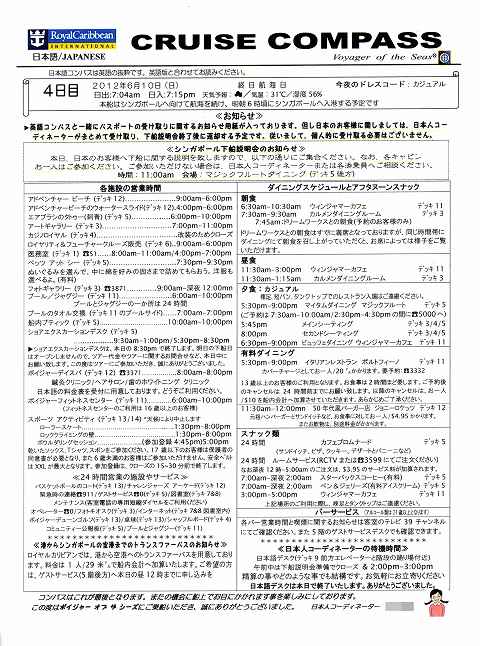 Voyager of the Seas マラッカクルーズ その29 06/10 その1 船内新聞