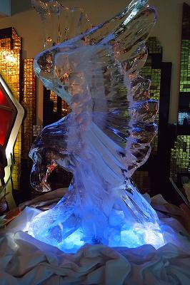 入り口すぐのテーブルには、コレもお約束の氷の彫刻