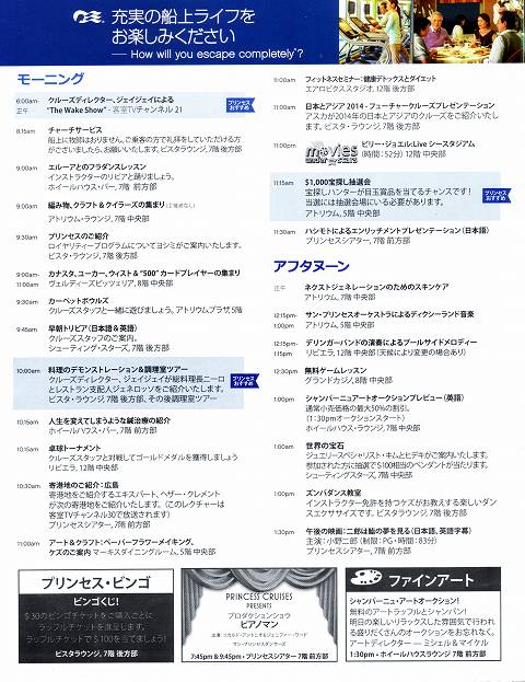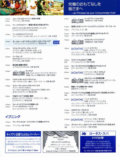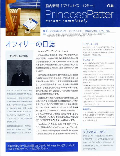 2013GW サン・プリンセス日本発着クルーズ乗船記 第二日 その1 船内新聞第二日