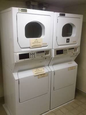 一回の洗濯に付きクォーター(25セント硬貨)が8枚必要。(乾燥機は別)