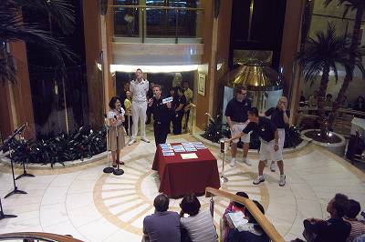 抽選会があったり、カクテル作りの競争のイベントがあったり楽しそうです。乗船の機会があったら、是非参加してみたいです( ´ ▽ ` )ノ サービスについては、私は海外船はそんなもんだと解ってるので、気になりませんが、日本船に乗り慣れてる人達には、気になって仕方がないのでしょうね。 船が大きくて、クルーの数が少ない。この時点で想像はつくと思うのですが。。。 そういう方達は、きっとお気に入りの船に戻っていくのでしょうね。