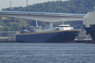 おまけ。マツダの自動車積み出し埠頭に停まってた自動車専用船「東洋丸」