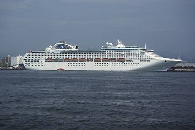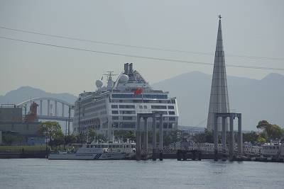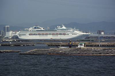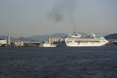 外貿埠頭のサン・プリンセスは市営桟橋からはこんな感じで見えてます。