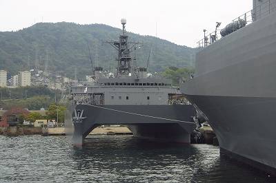 私の馴染みの艦船たちばかり!こちらのブログで拝見すると何だか不思議です(^^ゞ 遊覧船はこの日の前日から運航を再開したばかりで幸運でした。しかもGWで多くの艦が帰港していた上に、呉基地ならではのレア艦も多くて本当にラッキーでしたよ! ちなみに、私は14時前の広島発フェリーで呉に戻り「いせ」の一般公開に駆け込みました。 海上ですれ違いましたね…(^^; あ、はるしお型の潜水艦は除籍艦「あらしお」ですよ。もう1年以上もここに係留されたままなんです。その前に除籍になった「はやしお」もまだ呉基地内にいます。