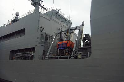 ケーブル敷設装置や海洋調査に関わる各種水中機器を装備し、これらを円滑に運用するために船体にはバウスラスターとアジマススラスター(いわゆるポッド推進器です)が備えられている。また、船価を抑えるために船体は可能な限り商船構造とし、敷設艦として最低限度の能力を発揮できる程度に収まっている