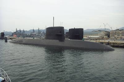 手前が多分"おやしお"型潜水艦 1990年代より竣工して海上自衛隊で運用されている通常動力型潜水艦。 で、その奥が"はるしお"型潜水艦だと思うのですが... 詳しい方、ご教授を...
