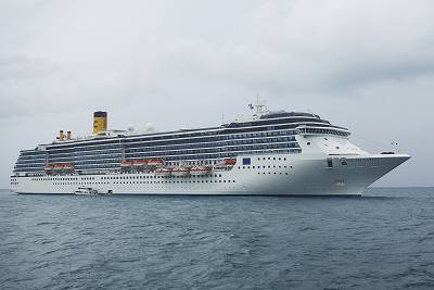 プーケットで沖止めしているコスタ・アトランティカを渡船から撮影。