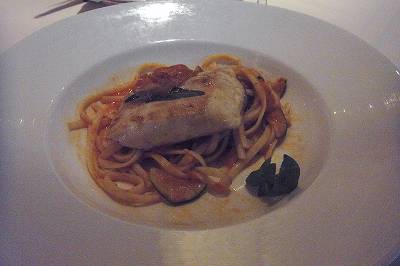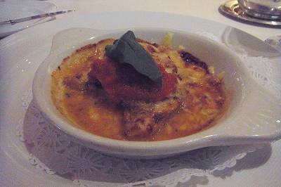 ・ナスのオーブン焼きパルミジャーナ ・ベネチア風あずきとパスタのスープ ・マヒマヒのソテー、セージとパルマハムのせ ・牛肉の赤ワイン煮込み ・ティラミス