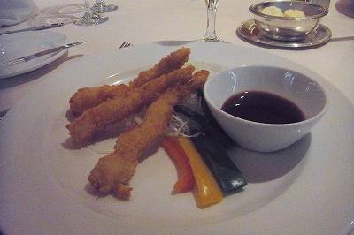 4件今日ワァ! 全部 美味しそうです。 特に「海老イカとムール貝の盛り合わせ」 オイラ、こういう ↑ ↑ メニューがある時は、 ウエイターに::メインもデザートも何もいらないから、 このメニューを5皿注文してもOK?か尋ねちゃいます。 当然、メインじゃないからOKです。 あと、写真のエビフライ、「カツ屋」でこんなの出した、、、 でも、このエビフライを5本と、ご飯に味噌汁と御新香、があれば十分。 欲を言えば、最後のデザートに大福2つと緑茶。 これで100%満足です。