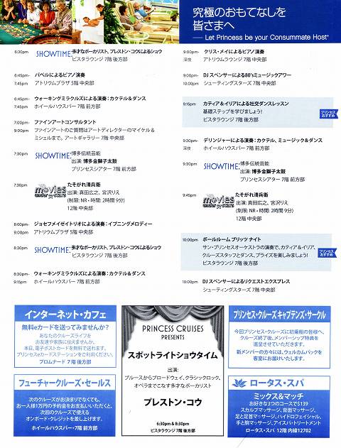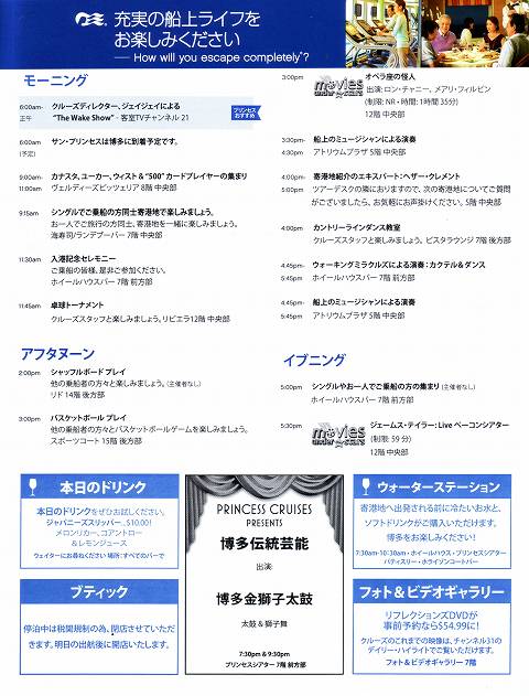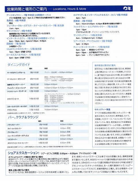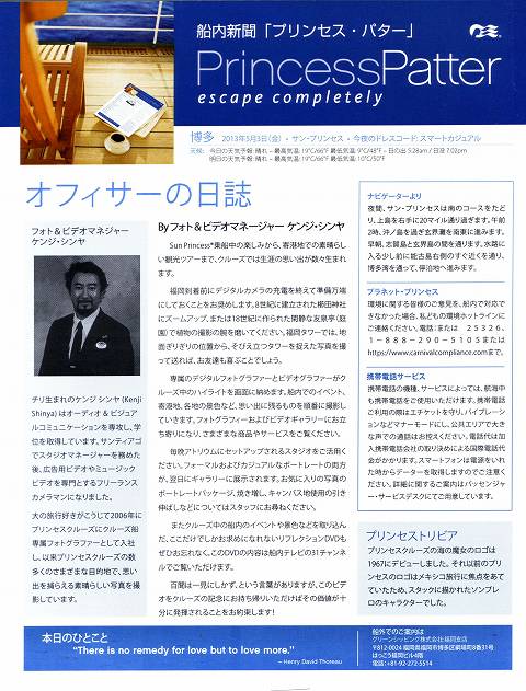 2013GW サン・プリンセス日本発着クルーズ乗船記 第七日 その1 船内新聞第七日