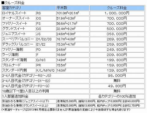 発表されたキャビン価格がコレ。