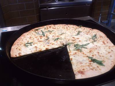 毎日2種類のピザが供されます。 その日に供されているピザはこの看板で知ることが出来るようになっています。