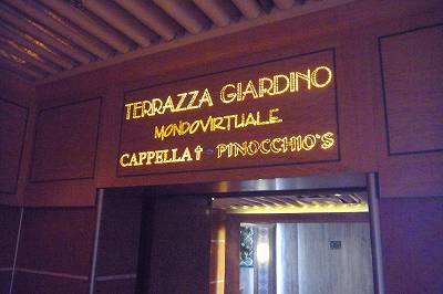 この先、劇場の裏側にあたる部分にゲームセンター(デッキ4)、チャペル(デッキ4)、チャイルドルーム(デッキ5)があります。