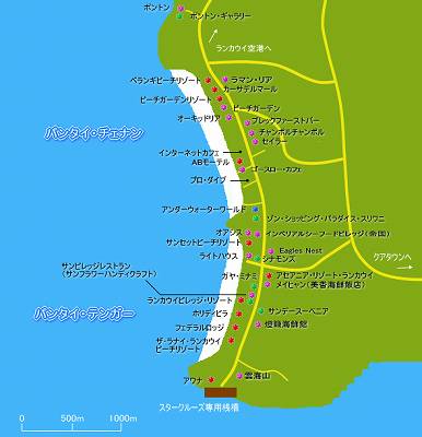 パンタイ・テンガー、パンタイ・チュナン、桟橋の位置関係はこんな感じ。
