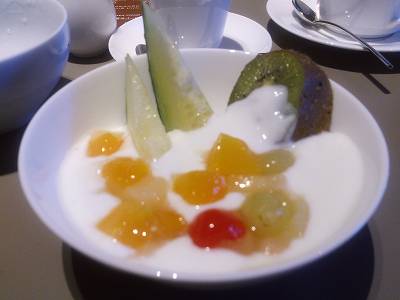 前述のフルーツにプレーンヨーグルトをかけたもの。