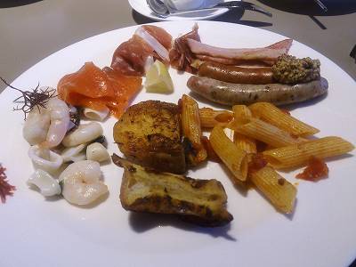 この他、冷製オードブルや種類豊富なチーズ、野菜たっぷりのトマトソースペンネ等があります。