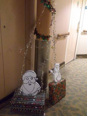 船内の廊下もいたるところに飾りが...
