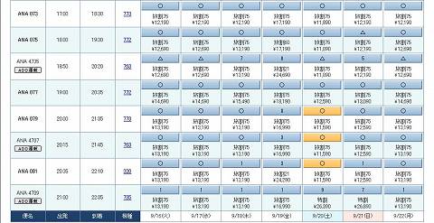 20日 ANA 987 旅割45 \14,090 19日 ANA 987 旅割75 \9,590 ANA 075 旅割75 \18,190 ANA 079 旅割75 \16,990 ANA 4737 旅割75 \16,990 ANA 081 旅割21 \24,290 ANA 4739 旅割75 \16,990 18日 ANA 075 旅割75 \15,490 ANA 079 旅割75 \13,190 ANA 4737 旅割75 \13,190 ANA 081 旅割75 \13,190 ANA 4739 旅割75 \13,190