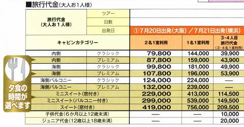 コスタ本体の方は、キャビン自体の場所(おもに階数。上層階がプレミアム)も違うんですが、このパンフレットにはそういう記載がありません。