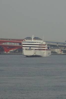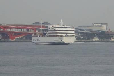 Nauticaの見学会の受付待ちをしている時に、チラッと見えた船影をおって外へ出てみたら、ちょうど、高松行きが出航するところでした。