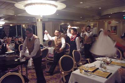 ウェイター達が並んで入場してきます。