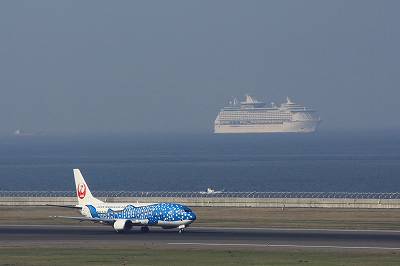名古屋に入港する船って空港からこんな風に見えるんですね。