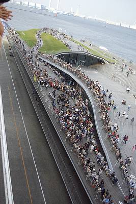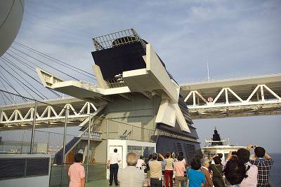 船上はまだそれほど人が上がってきてません。橋を通過する頃にはどれくらいになるやら...