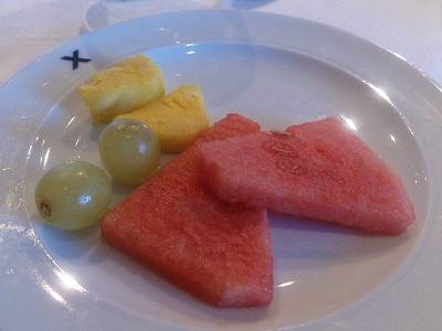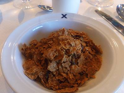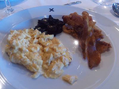 おはようございます。クルーズ出発前に拝見することができました。「絶句!!」最近のビジネスホテルの朝食でも、これ以上のもがいくらでもは提供されていますよね。(決してビジネスホテルを馬鹿にしているわけではありません)しかも撮影者の腕から考えると、写真映りが悪いのではなくホントに不味そう。特に和食は手をつけるのも躊躇しそうです。 冠たるセレブリティークルーズに、こんなものを地中海クルーズはおろかおそらくアジアクルーズだって出ないでしょうから「阪急の値切りの成果?」と言えるのではないでしょうか。HISがチャーターしたコスタ・ビクトリア級ですよ。