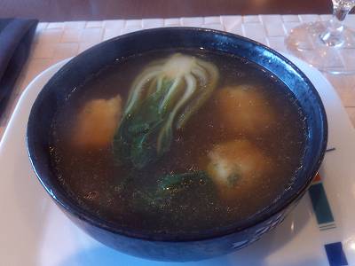 日本語のメニューには"日替わりスープ"しか載ってないんですが、英語メニューには、日替わりスープに加えて、この"ワンタンスープ"と"味噌汁"が載ってました。