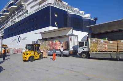桟橋に戻ってくると、食材やらなんやらを大量に積み込み中でした。