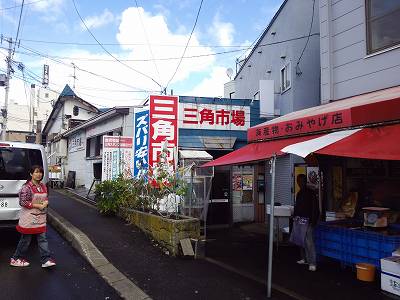 土地、屋根の形が三角の形をしていることから「三角市場」となったらしい。