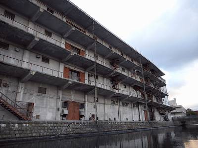 両側の橋げたの隙間に鳩がいっぱい...(^^;)