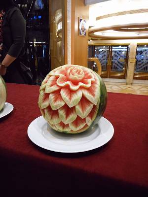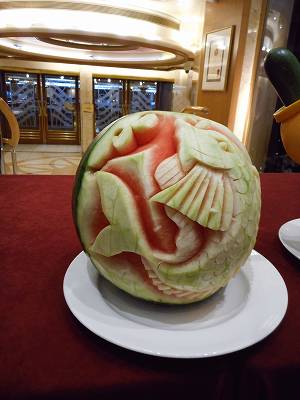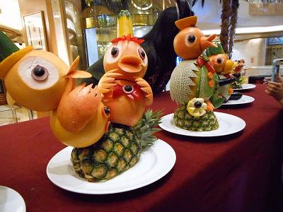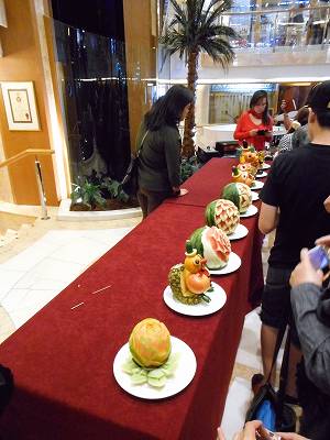 ロビーでは、果物と野菜の彫刻をやってました。
