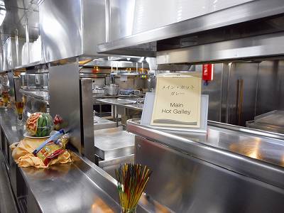 2件厨房ツアー、期待していたのに… 説明も無くギャレーぐるっと回って、終了。 普通、こういうもんなんでしょうか? ロイヤルカリビアンのオールアクセスツアーでしか回ったことが無いので、不完全燃焼でした。σ(^_^; (あれはアレで、衛生的にどうよ?とは思ったのですが…)